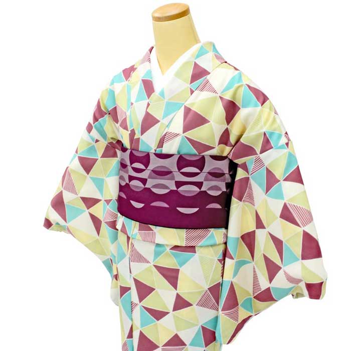 【素材】 表地:ポリエステル100% 裏地:ポリエステル100% 【洗濯方法】 きものをたたみ、洗濯ネットに入れて手洗い、 もしくは手洗いに相当するユルめで洗濯して ください。