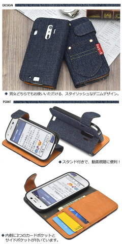 らくらくスマートフォン4 F-04J/me F-03K用デニムデザインスタンドケースポーチ デニムデザインのらくらくスマートフォン4用スタンドケースポーチ。